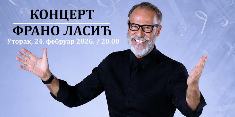 Овдашња публика биће у прилици да наредног уторка, 24. фебруара, ужива у концерту Франа Ласића, познатог југословенског и хрватског глумца и певача. Франов препознатљив глас и харизма обећавају вече пуно