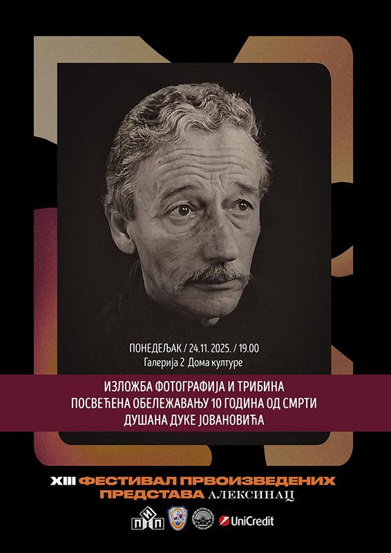 Кроз евоцирање успомена, позоришне плакате представа које је радио, као и фотографије из професионалног живота присећамо се нашег суграђанина Душана Дуке Јовановића, дугогодишњег позоришног радника и идејног творца Фестивала првоизведених представа, који нас је напустио 3. јула 2015. године у 82. години живота.