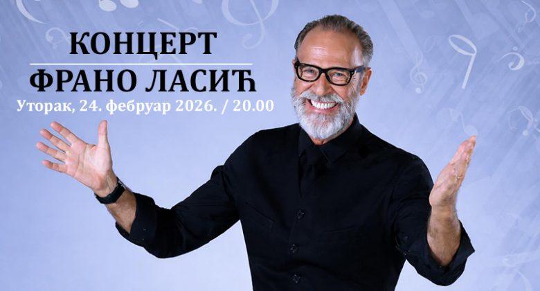 Овдашња публика биће у прилици да наредног уторка, 24. фебруара, ужива у концерту Франа Ласића, познатог југословенског и хрватског глумца и певача. Франов препознатљив глас